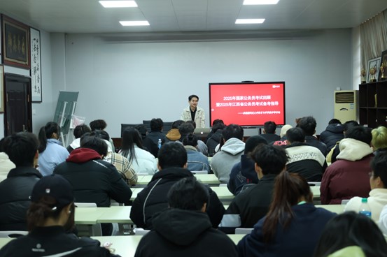 为帮助同学们深入了解考公、考编政策,掌握备考策略,12月4日,我院在107会议室举办考公、考编形势分析暨备考指导宣讲会,本次宣讲会由李能征老师主讲,80余名学生参加。