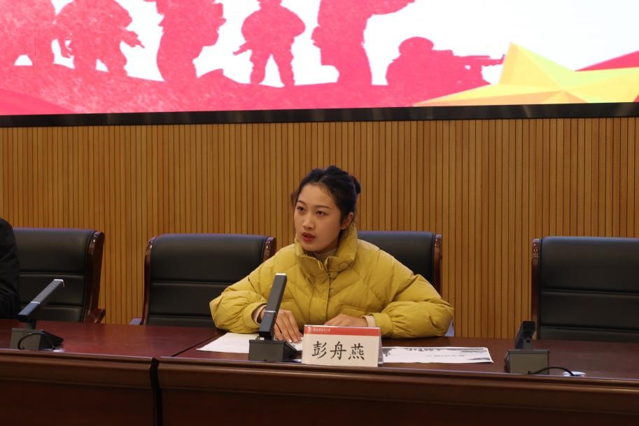会议伊始,彭舟燕老师从各个角度解读、分析今年的征兵政策,着重解析了毕业生在役期间优待政策,鼓励大家参军入伍。