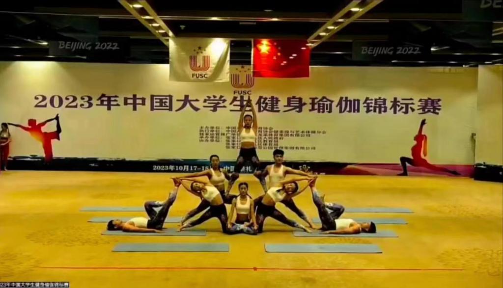 (体军部 李红)2023年10月17日—18日,中国大学生健身瑜伽锦标赛在河北省张家口市举行。我校瑜伽代表队在领队张珍和教练李红老师的带领下参加丙组(高水平组)7个项目的比赛,获得了第一名2项,第二名1项,第三名2项以及多个第四名至第六名成绩,并获得了团体总分第三以及体育道德风尚奖的优异成绩。