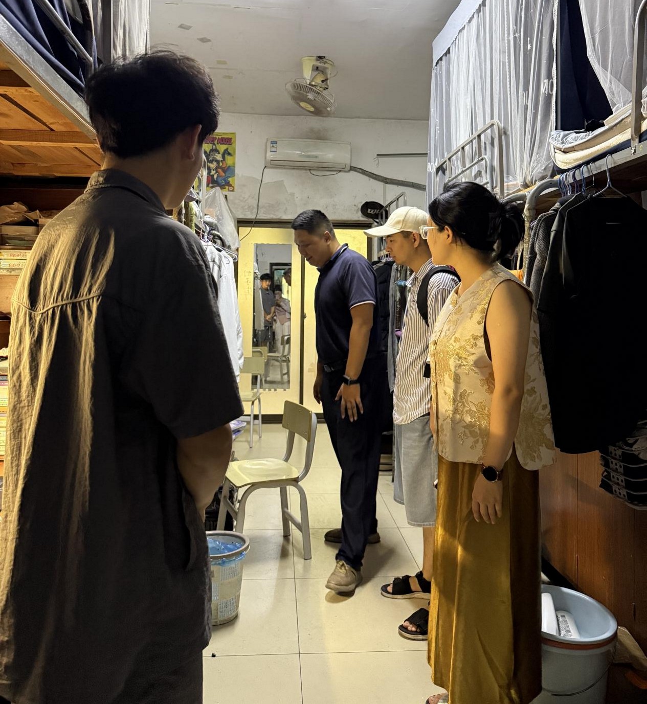(三)深入寝室,排查安全隐患:体军部领导、辅导员深入学生宿舍,进行安全卫生检查,重点排查用电、消防等安全隐患,并进行现场安全教育提醒。