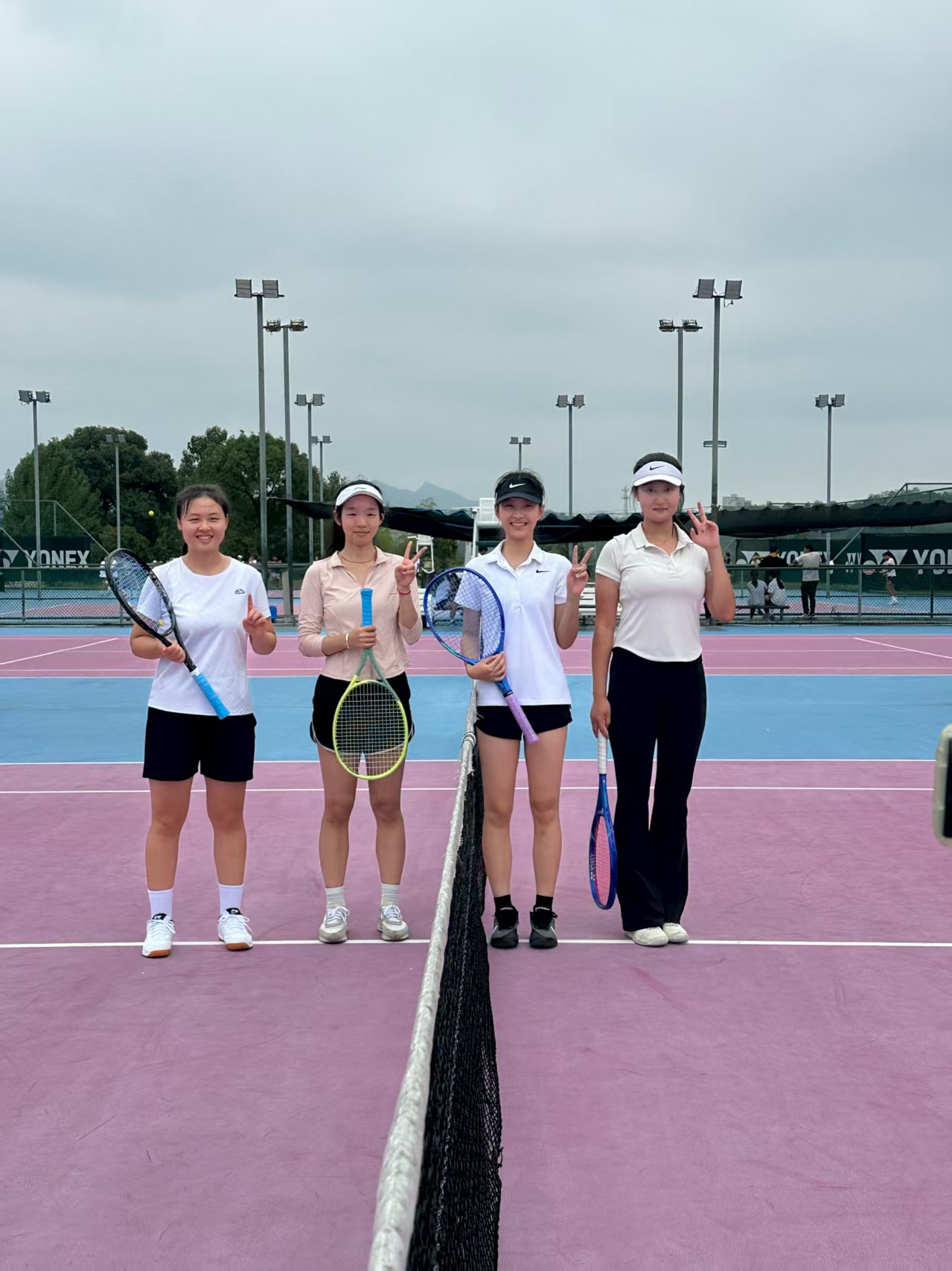 甲组女双冠军赛后合影(右边为我校队员)