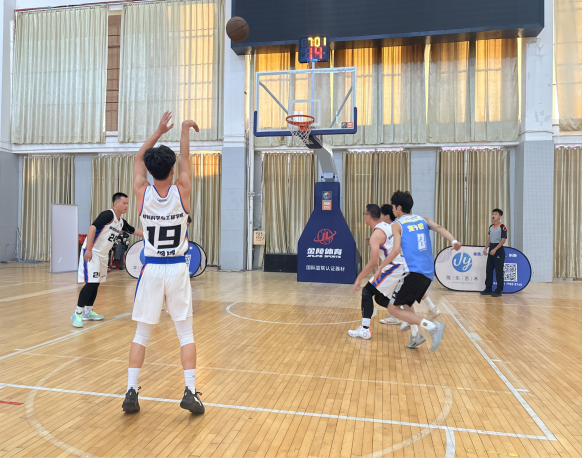 比赛期间,篮球赛场上人声鼎沸,加油声、呐喊声让赛场不断升温,欢呼声让球员精神抖擞,各参赛队员意气风发,毫不示弱,一颗颗篮球在空中划出美妙弧线。