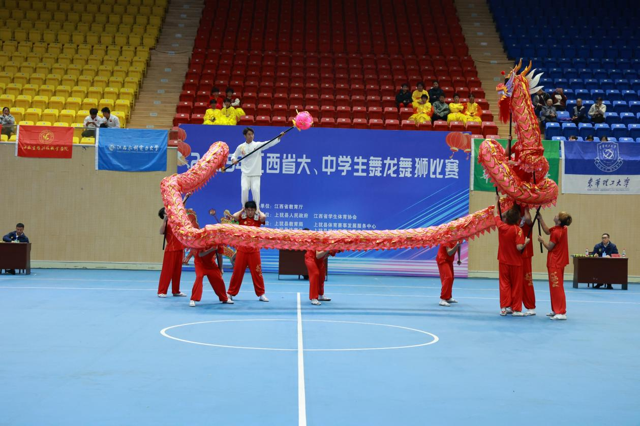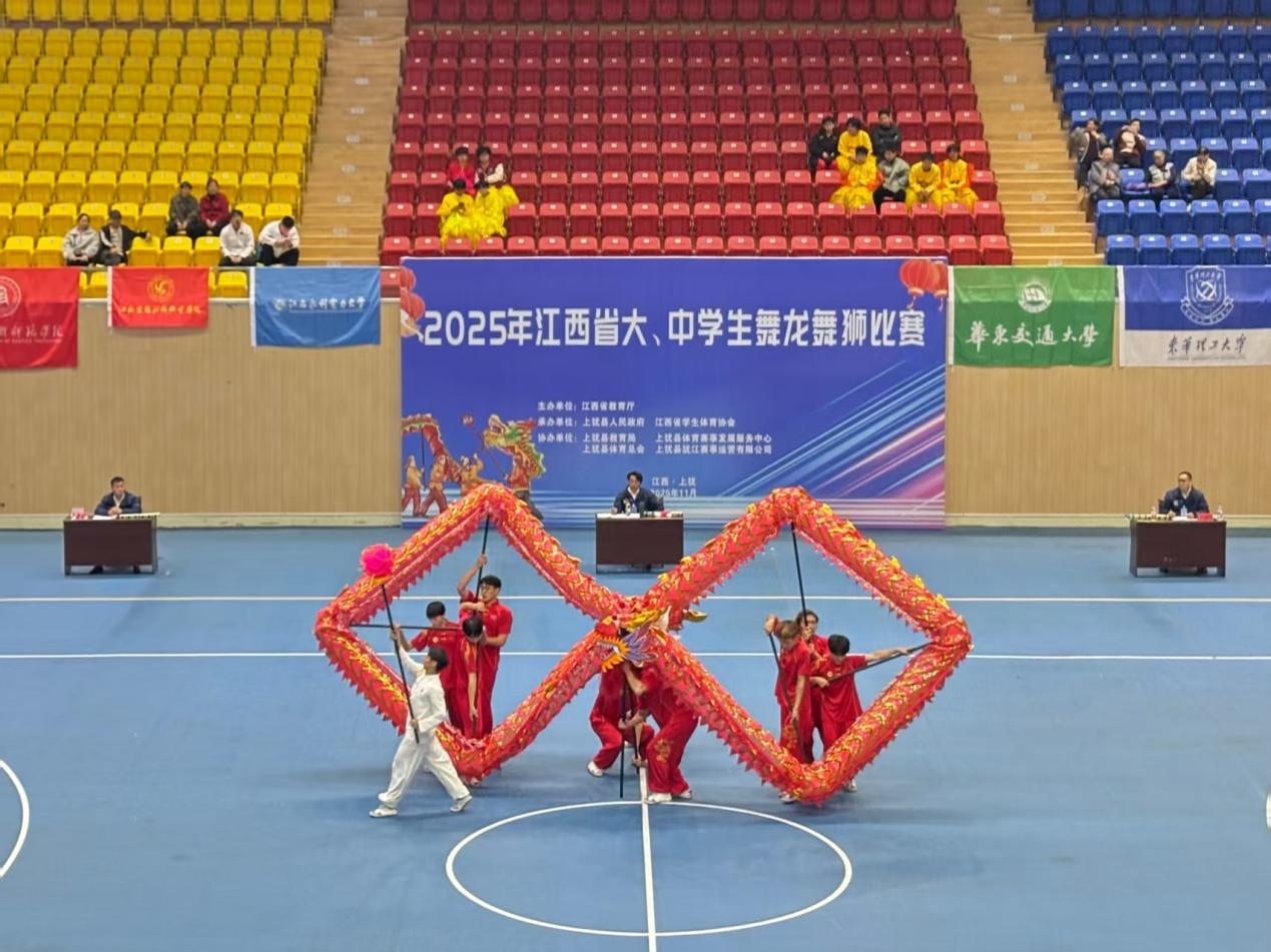 近日,由江西省教育厅主办,上犹县人民政府、江西省学生体育协会承办的2025年江西省大学生舞龙舞狮比赛在上犹县文体中心正式拉开帷幕。赛事吸引了全省40所高等院校的660余名运动员、教练员及领队参赛。我校舞龙队首次参加该类赛事,在王亮华和潘桃铃老师的带领下,我校以崭新的姿态投身舞龙竞技舞台,最终在舞龙规定套路项目中,荣获全省第四名的佳绩!
