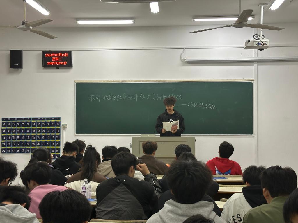 为进一步加强学生爱校荣校教育,引导学生充分了解我校本科教育教学审核评估的基本知识,体育与军事教学部以学生干部集体学,班级专题班会学,党团支部小组学的形式组织学生开展《本科教育教学审核评估学习手册(学生版)》专题学习。