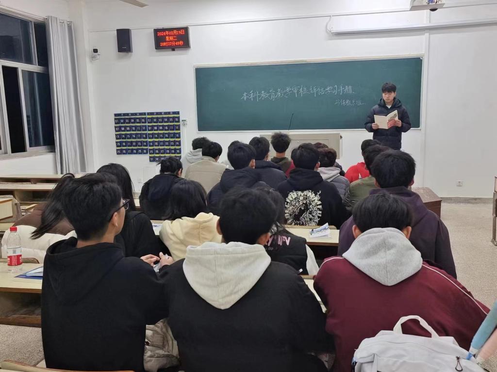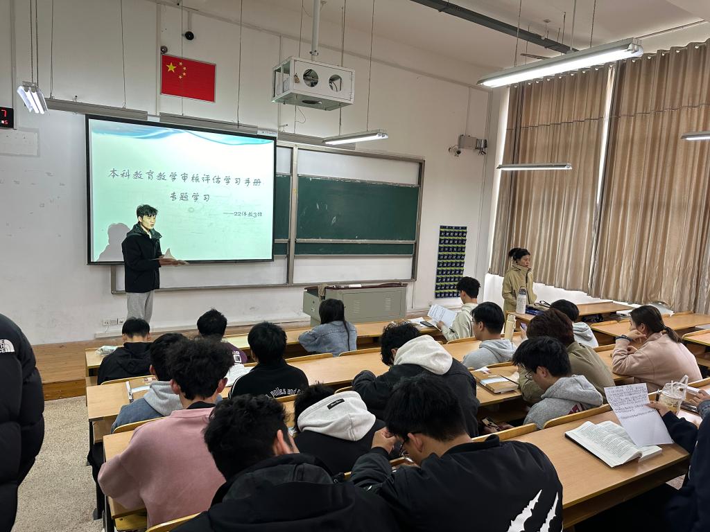 各班级还采取动员学生干部、学生党员组织学生进行自学,充分发挥学生干部的引领作用,引导广大学生以更高的学习热情、更强的使命担当参与到本科教育教学审核评估工作中。