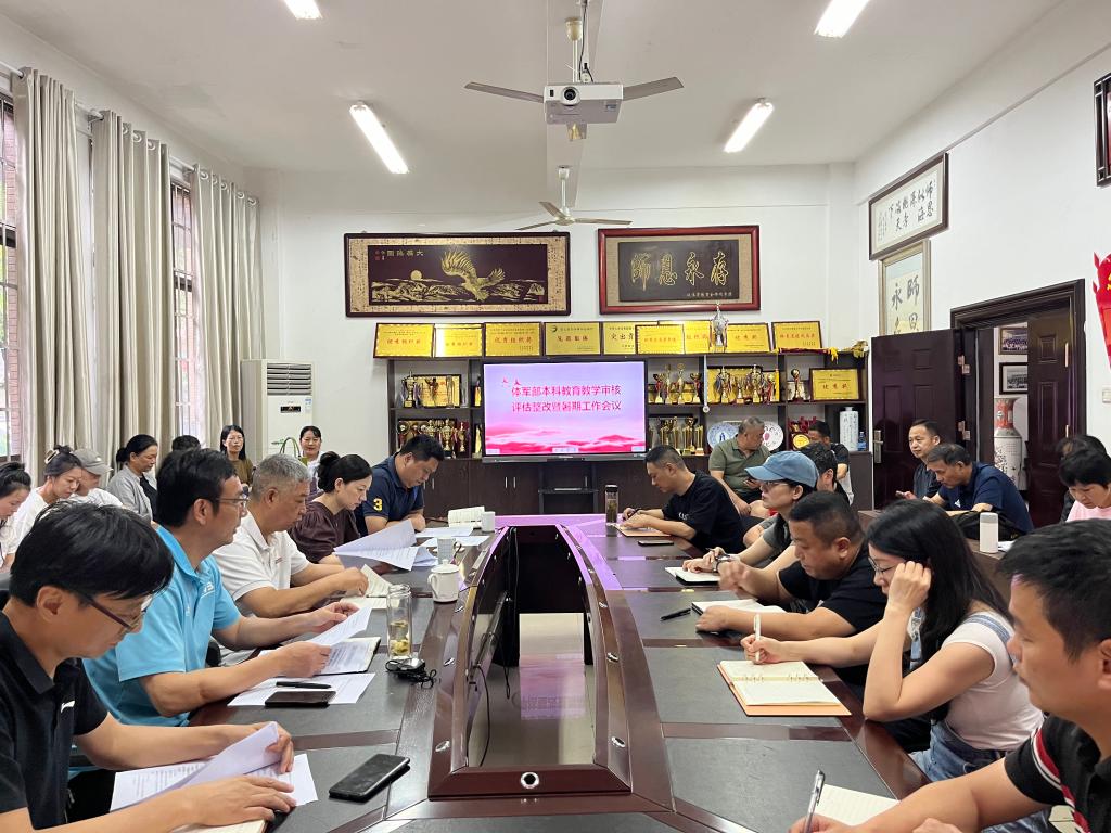 为落实学校本科教育教学审核评估评建工作第二次推进会会议精神,对预评估中发现的问题进行整改,扎实推进各项评估评建工作,6月24日下午,体军部在107会议室召开了本科教育教学审核评估整改暨暑期工作会议,校党委委员、副校长吴本荣及体军部全体教职工参加了会议,会议由体军部主任陈利和主持。